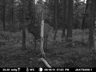 Klarte også å bli dyret som ble fota eksakt ved starten av 17. mai. Mulig det var andre motivet for å ligge der. Ny saltstein er nå på plass iflg Jaktboss, som også satser på en liten viltåker midt i siktelinjen for Emil sin vakeplass.