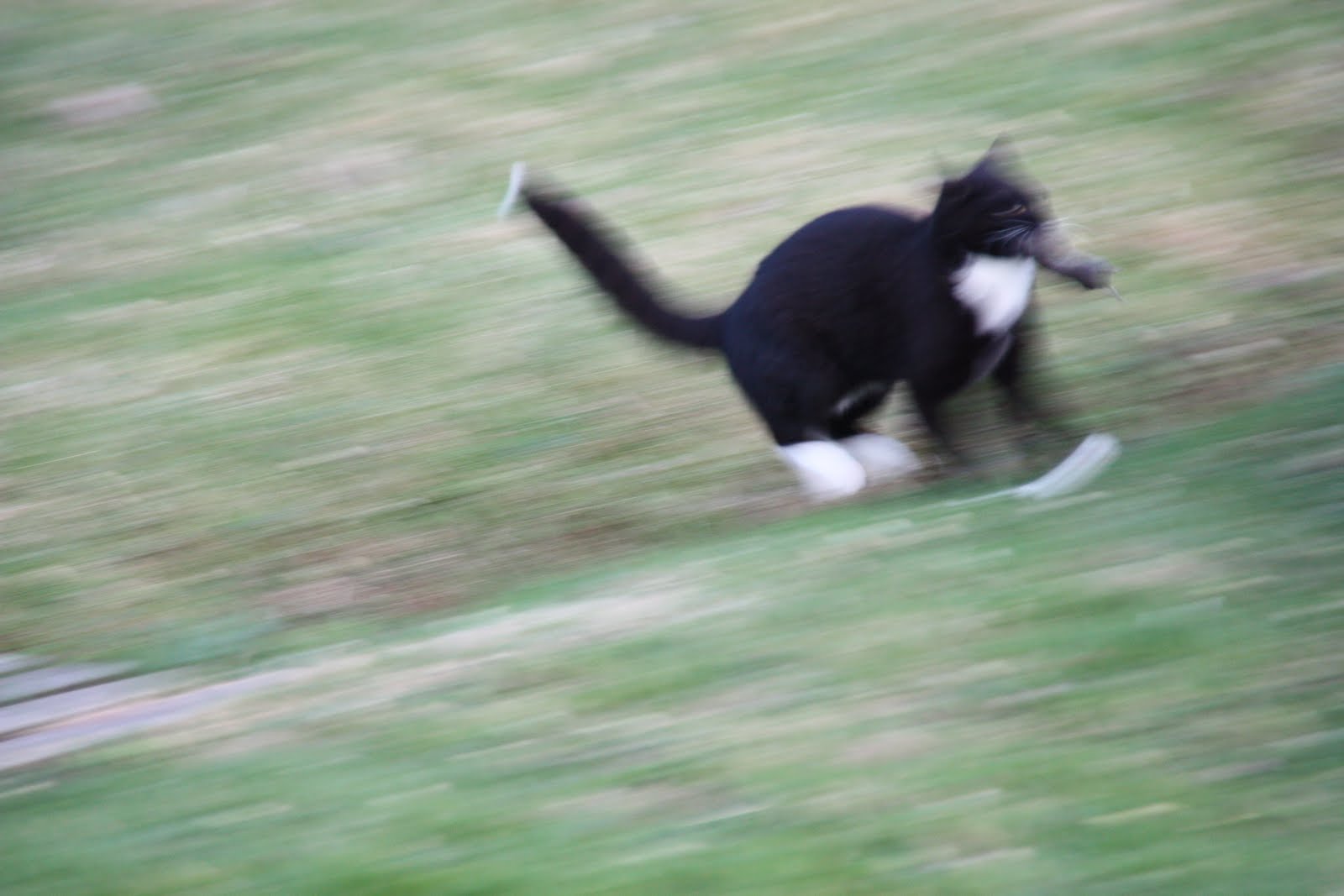 Ellers viste lille katten opp hvor dyktig han er med klörne i kveld, og katten kan virkelig leke med musen. Hes faster than the eye – ihvertfall faster than my lens…