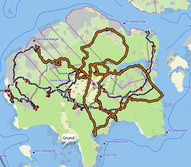 Vel fremme var det jo bare å slippe han og forsöke ta dagens tenkte rute. BT var guide. Albin hadde andre planer og fant snart noe godlukt. Vanskelig å höre når losen egentlig startet pga vind, men vi skjönte jo etterhvert at det måtte väre drev. Fordelene med öy kom til sin rett og drevet kom snart i retur.