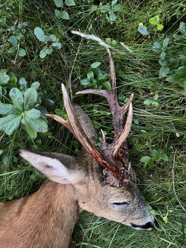 Beveger seg sakte og nå kommer den ut i åpning. Der ja. Må jo være bukk, joda det er noe mer enn ører.