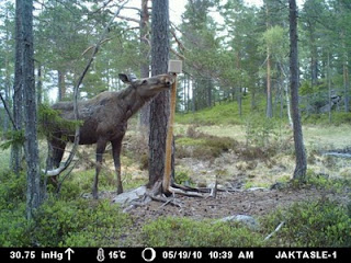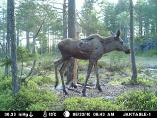 Jeg er meget fornöyd, med både elg, hjort og sist (også minst) duer. Det er nå identifisert 5 ulike elger, fire duer og en hjort. Et for meg noe pussig stadiet i utviklingen på geviret til hjorten, blir spennende å se hva det blir etterhvert.