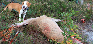 Lurer på om dette bilde er arrangert eller om det er vanlig åtegevir der borte! Jakt med pil og bue er jo faktisk lovlig her i Finland også. Men nå blir det först innkjöp av haglepatroner for neste helg, da går turen til Lappland på fuglejakt – dessverre uten hund.