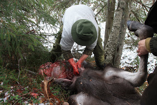 Tre elg tre skudd, samlet fluktstrekning ca 30 meter. Svært lite kjøttødeleggelse og en god avskytning. Burde være minst like mange elg i terrenget neste år siden det er obervert 3-4 kalver.