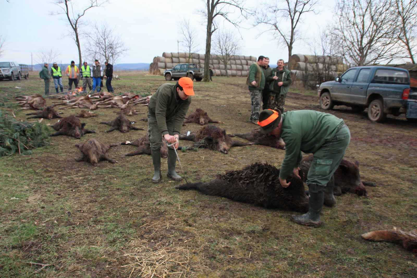 Andre drev denne dagen så jeg ingenting, også her meget få skudd maks 10. Har en video, får se om jeg får lagt den opp senere. Noen hadde bra pass og det ble noen griser og hjorter på paraden. Kort drev og vi avsluttet kl 14!!!! Det ble deretter viltparade med hornblåsning (første gang det ble blåst i horn – trodde de skulle blåse igang og avslutte drevene). 25 dyr på paraden, men som tidlige sagt var det kun 14 som vi 18 fra Norden hadde skudd. Vi hadde skutt 52 skudd. Et særdeles dårlig resultat og stemningen bar preg av dette.