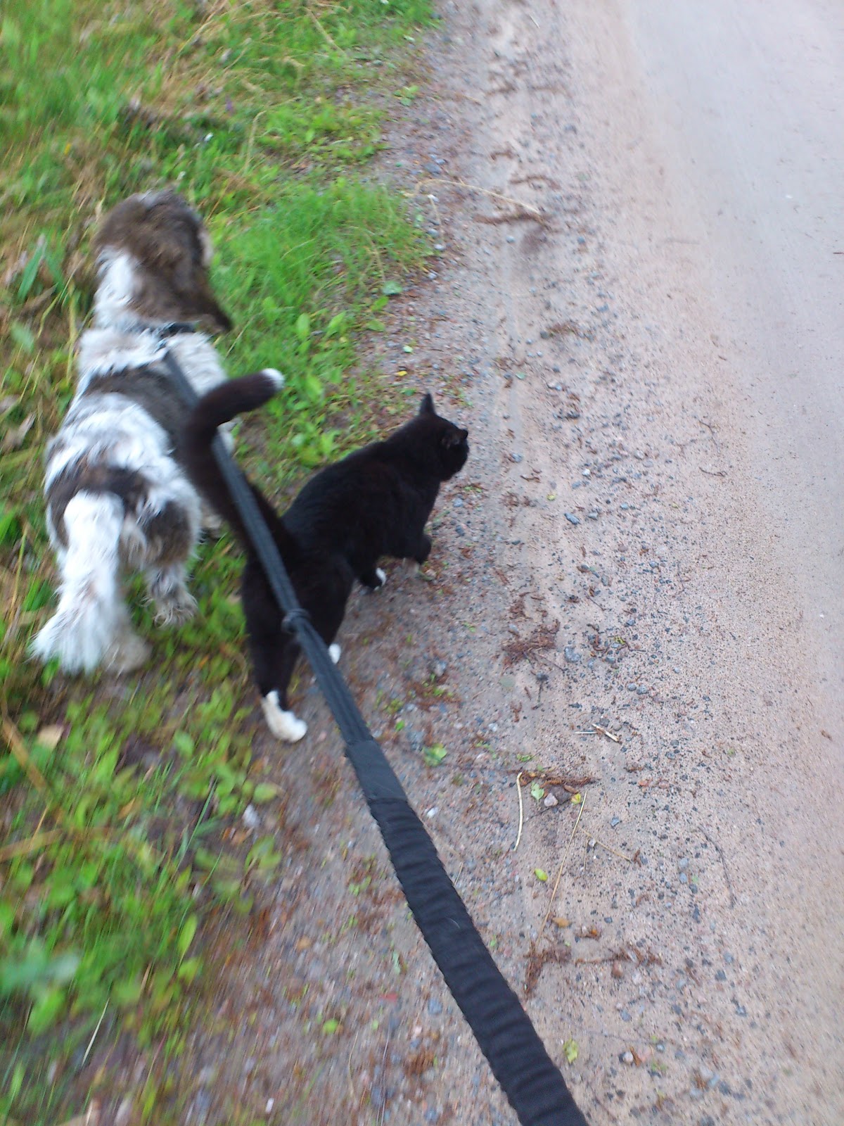 Ut på en liten promenad om morgen er standard rutine. Kattene kommer også med om dem ikke får mat först. Litt bilder på Albin og Timon fra dagens tur.