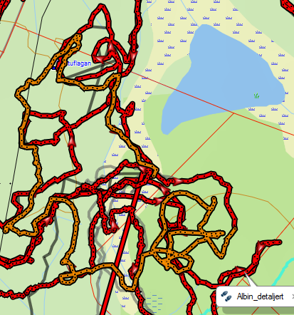 Avgårde tok det men ikke ille, og over en kraftlinje, over en vei, snur tilbake over vei og kraftlinje. Håpet stiger og det er bra retning. Da blir det problem og etterhvert tap!!! En dröy halvtime tok det. Albin fölger sporet sitt fint på returen, men da han er ca 150 meter unna hörer jeg han bjeffer litt. hmm bruker ikke gjöre det på returen, men han avviker fra returen og det er full los og närme. Spennende men det går nesten samme vei som forrige los.