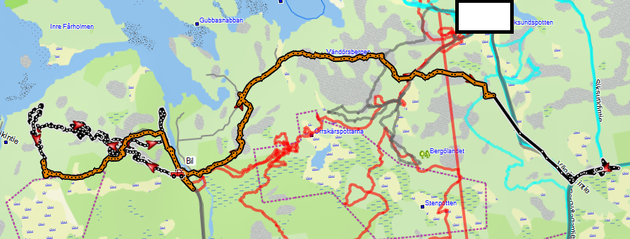 Albin veldig fornöyd med å komme ut av bilen og pisser i to minutter för det skjer noe, dvs han må jo også bajse litt og en komplett PER er unnagjort. Da er det et par reelle sökerunder på han. Og dette fölges av los leting på godfot. Mistenker at det er noe på gang som han ikke får fart på, for det er elendig losföring.