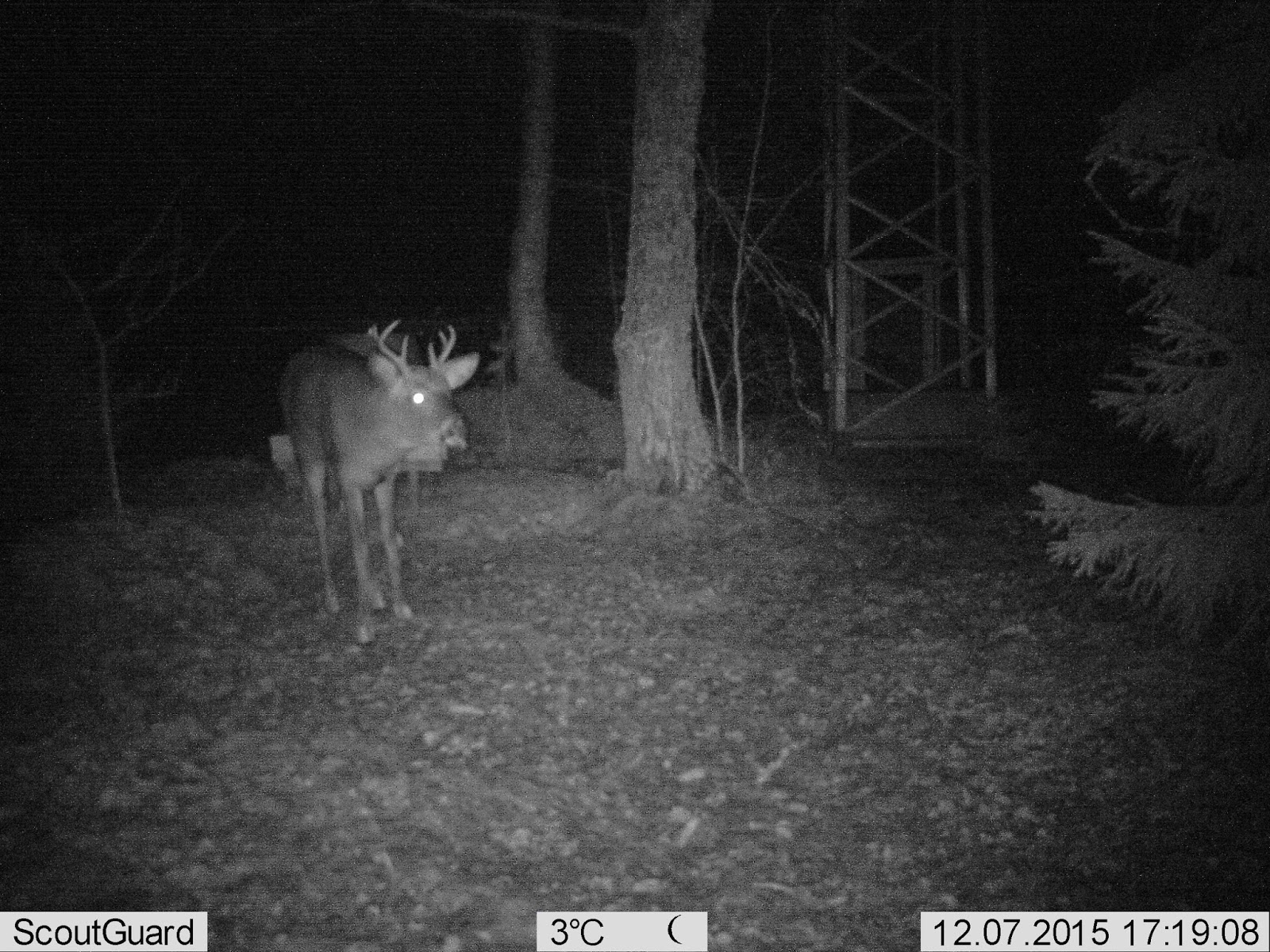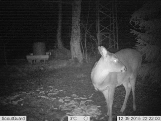 Fikk hentet minnekortet idag og mye bilder. Synes imidlertid som det kun er fire ulike dyr. En liten fin bukk, en ensam hind og en hind og kalv. Ikke noe rådyr å se dessverre, heller ingen bilder av hare.